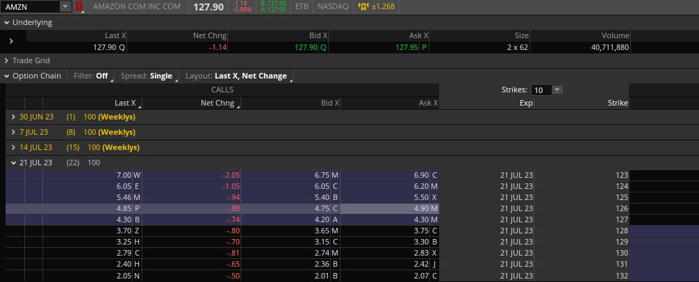 Here are call options that are available to buy for Amazon: