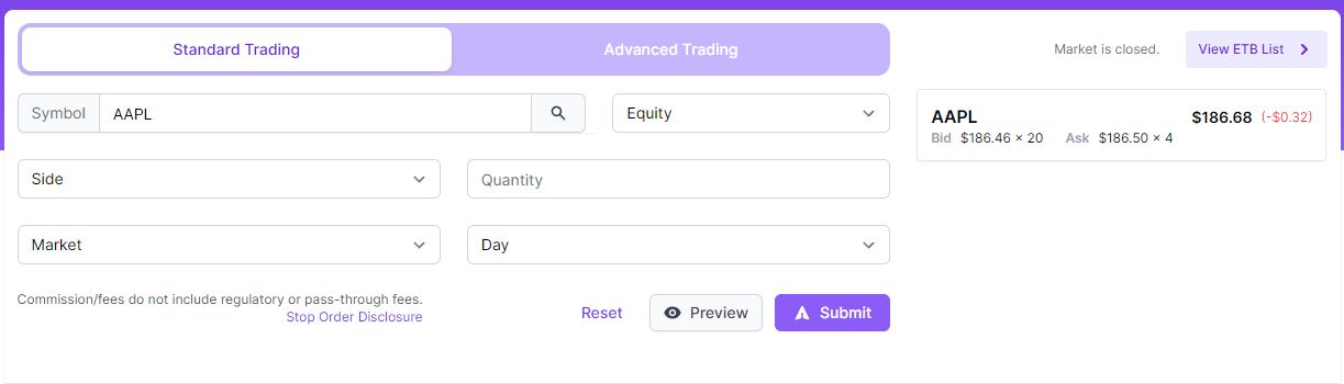 But for now, we want to show you how to buy stocks in the first place. So we're going to retake the example of Apple and show you step-by-step how to buy Apple stock using screenshots from the Tradier brokerage account.