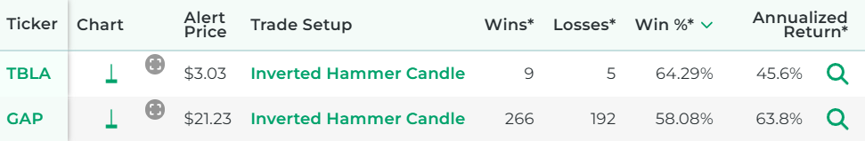 That tool ensures that you don't have to waste time flipping through stock charts manually to find stocks with an inverted hammer candle.