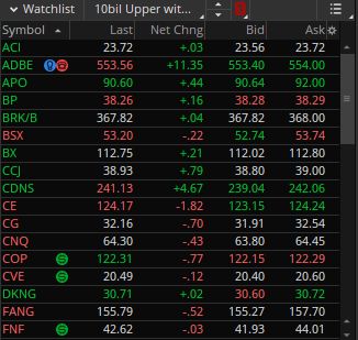 You can see a watch list in that image, but it was auto-populated from a Thinkorswim scan. We did not manually put those tickers into that watch list.