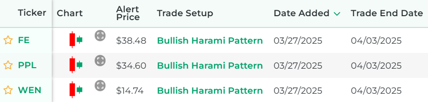 It's powered by our proprietary stock scanner, which searches once per day for stocks that have bullish harami patterns.