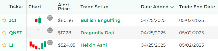 It's powered by our proprietary stock scanner, which searches once per day for stocks that have these patterns.
