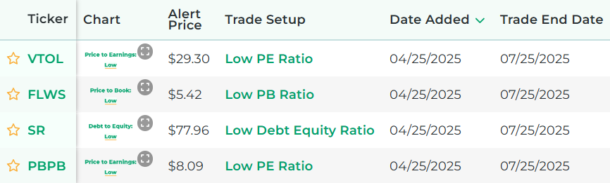 It's powered by our proprietary stock scanner, which searches once per day for stocks that meet these fundamental criteria.