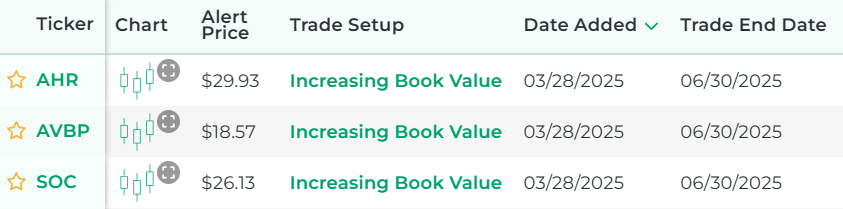 It's powered by our proprietary stock scanner, which searches once per day for stocks that have increasing book values.