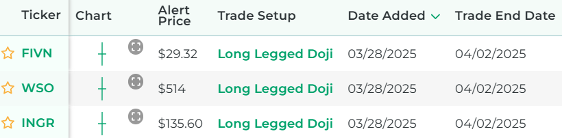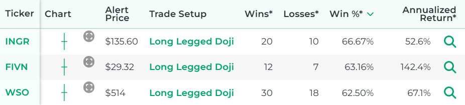 It's powered by our proprietary stock scanner, which searches once per day for stocks that have long-legged doji candles.