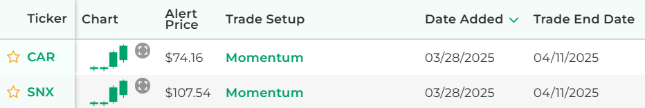 It's powered by our proprietary stock scanner, which searches once per day for stocks that have momentum.